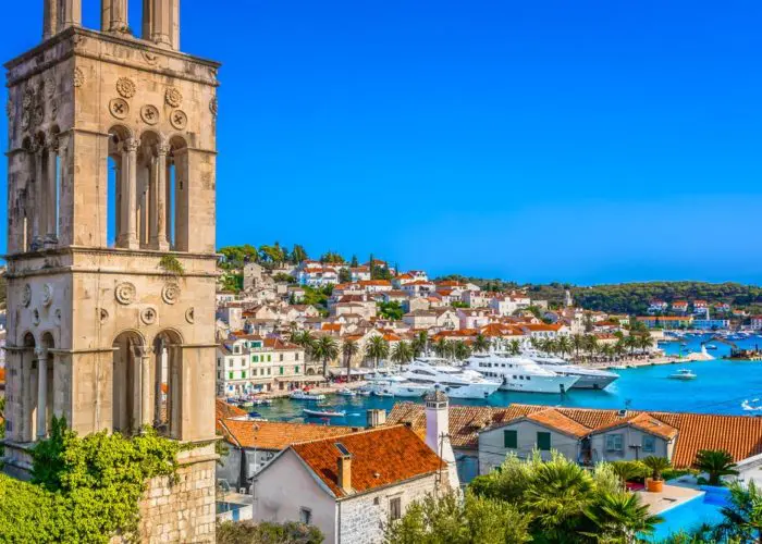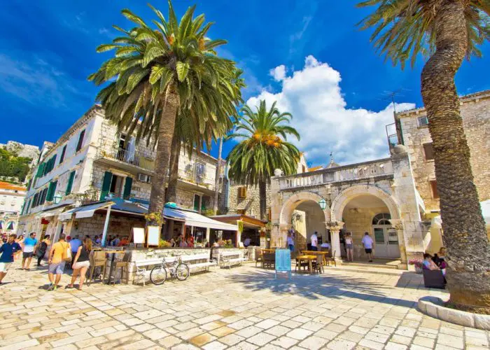 Along at the harbour, you’ll find restaurants and cafes serving pizzas and locally-caught seafood, plus a number of boats offering excursions to the islands of Hvar and Brač.