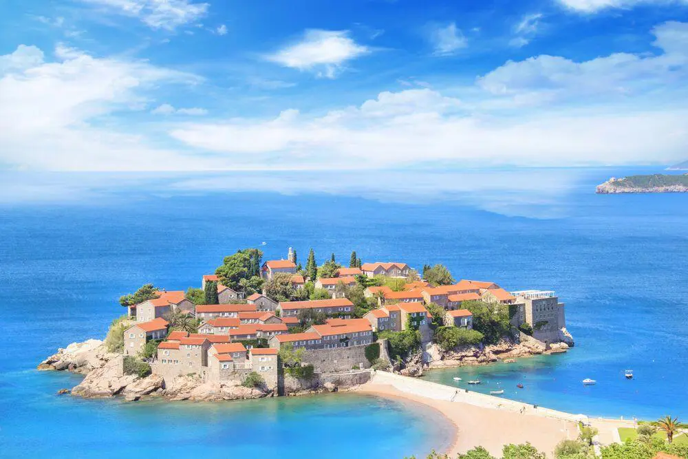 The 5-star islet hotel resort is on the Adriatic coast of Montenegro, connected to the mainland by a narrow trail.