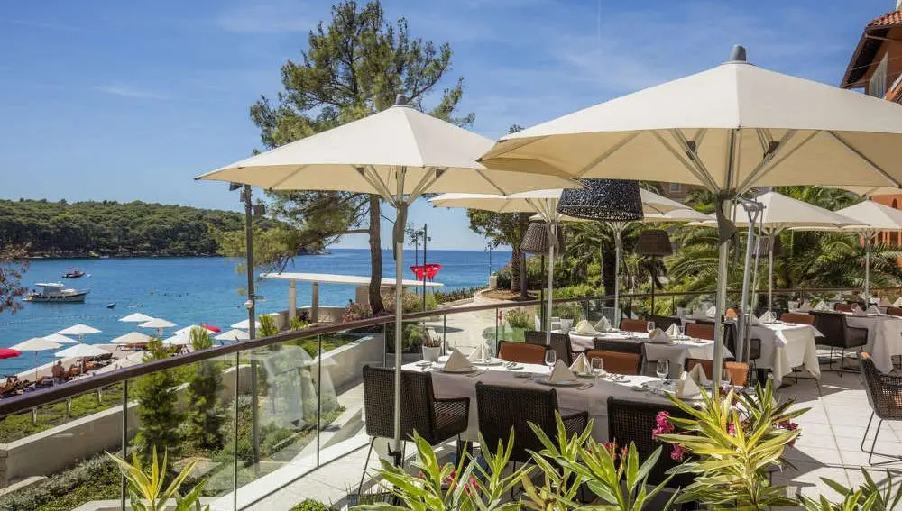 While at the hotel, guests can enjoy a meal in a fine-dining restaurant Alfred Keller. The restaurant has a terrace and offers a selection of Croatian and international dishes and beverages. The hotel has an impressive selection of fine wines. Other restaurant options can be found in the centre of Mali Lošinj.