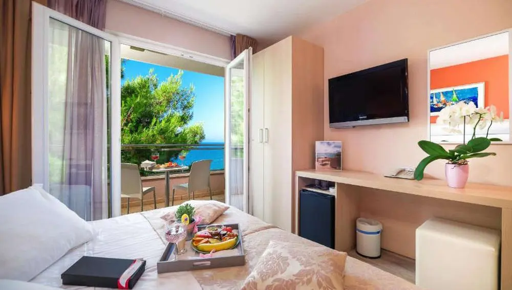 In the hotel restaurant, guests can enjoy both domestic and international dishes. Every morning guests can choose from an array of meals and beverages served in a rich buffet. The restaurant features an outdoor terrace with a magnificent view of the crystal clear waters of the Adriatic sea.